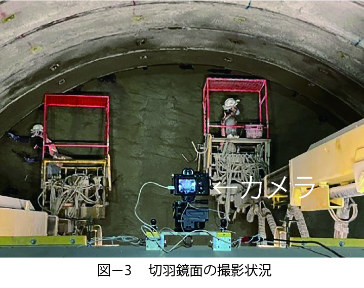 長崎県発注の主要地方道厳原豆酘美津島線道路改良工事((仮称)箕形トンネル)に本システムを適用・試行しました(図-3)。切羽監視責任者が切羽に極力接近することなく、40~60秒程度でひび割れ検出結果を表示でき、肌落ち監視を補助するシステムとして有効であることを確認しました。
