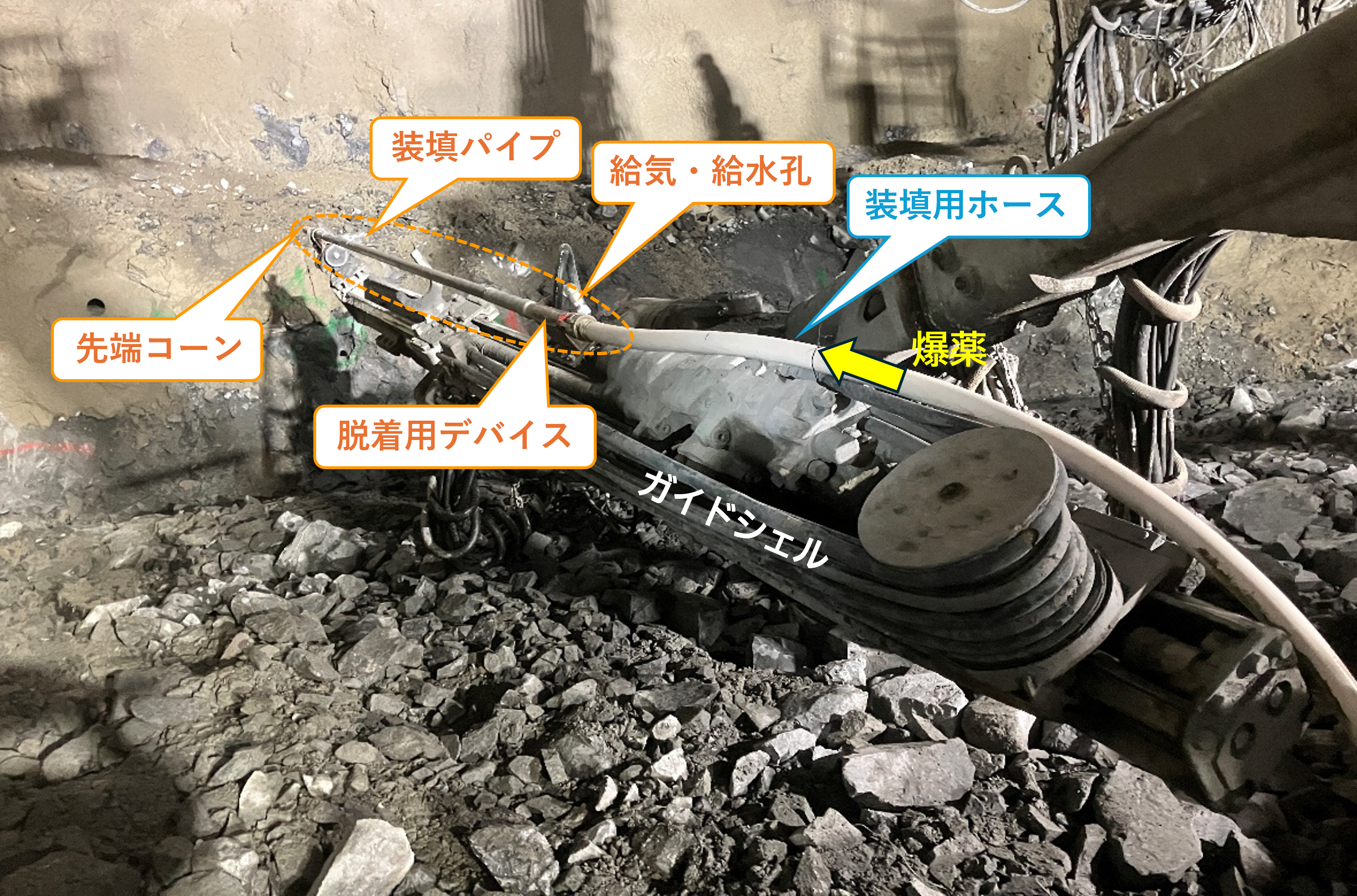 山岳トンネル工事における装薬時の肌落ち災害を防止 ~装薬孔内が崩れた場合でも対応可能な爆薬遠隔装填装置を開発~